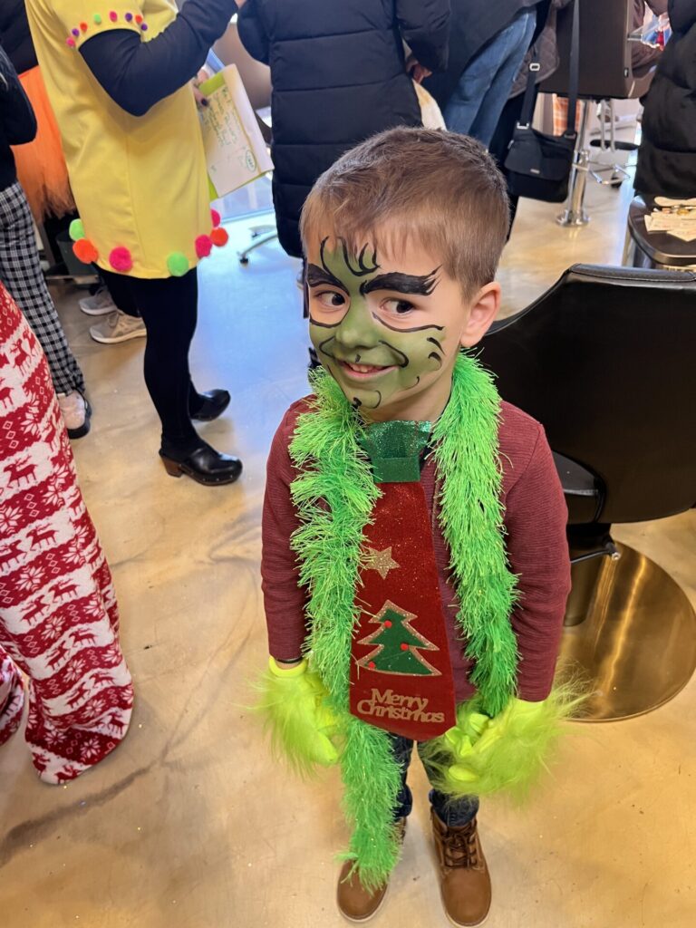 Inside, the MODE Andover team donates their time and expertise to each child’s makeover, working alongside guest artists from DaVinci Salon and student volunteers from Lowell Hairstyling Academy. Lifestyle Lulu enhances the space with custom balloon sculptures, festive décor, signature signage, and a Grinch-themed photo booth experience.