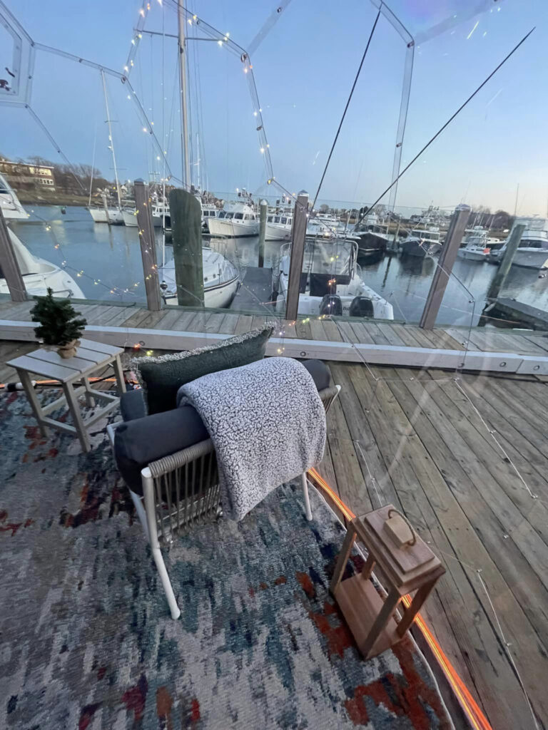 “Winter on the waterfront has its own charm, and we wanted people to be able to enjoy it instead of staying indoors all season. The igloos let guests stay warm while still feeling like they’re part of the scene outside,” says Sea Level NBPT co-owner Andre Freyer. “Newburyport is such a beautiful, historic town, and the igloos let you experience it in a fun and different way.”
