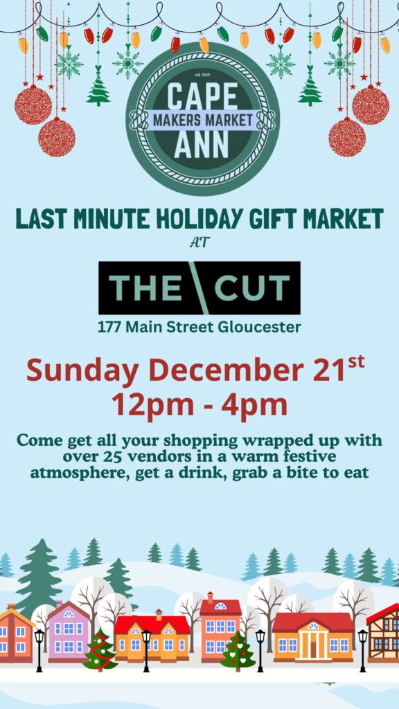 Come on over to Gloucester’s hottest venue and shop from over 25 unique local Makers – with something for everyone on your list – including you! Wrap up your shopping in a cozy festive atmosphere! Grab a drink while you shop and when you get hungry grab a bite from Little Sister.