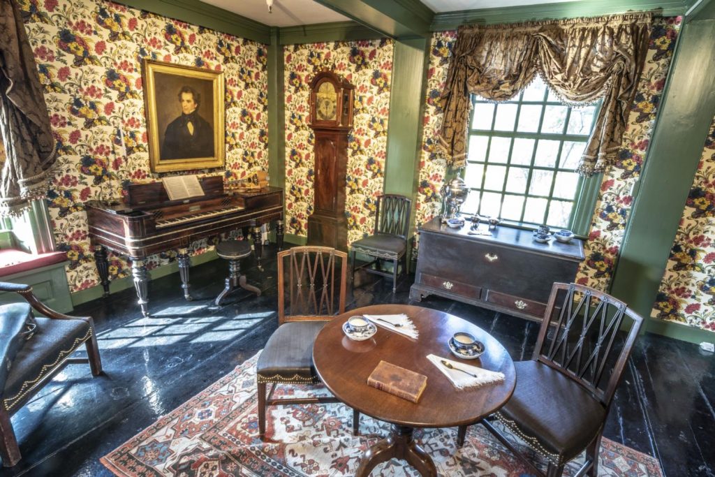 The museum is open daily from 10a.m. to 6p.m., and tickets for the Mansion Tour Package include a 45-minute guided tour of The Gables, a self-guided visit in the Nathaniel Hawthorne Birthplace, a self-guided visit in the Counting House, access to the Museum Store, and an audio tour of the gardens, grounds, and waterfront. Tickets can be purchased online in advance of your visit. They are released on a monthly basis for the following month. Gables members, residents of Salem, and members of the North American Reciprocal Association receive free entry to the museum. The month of October brings special rates, ticket release dates, and events.