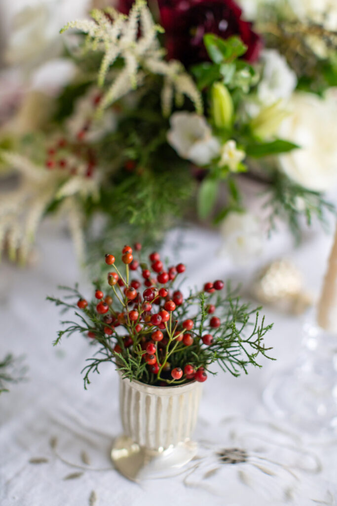 “Once Thanksgiving hits and the holiday season begins, we do a lot of florals for people who are having open houses, book clubs, parties, or Christmas dinners, and they order arrangements. I think the days of just plopping one thing in the center of your table are not that popular anymore. People are doing a whole table set.