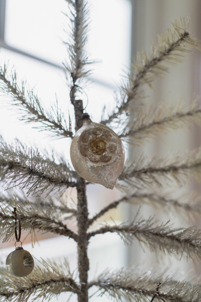 Vintage crystal and silver pieces are especially popular, adding nostalgia and charm. In her own home, Sigman decorates with vintage French baskets filled with pinecones or glass ornaments, antique brass candlesticks, and Christmas trees placed in vintage French urns instead of traditional stands.