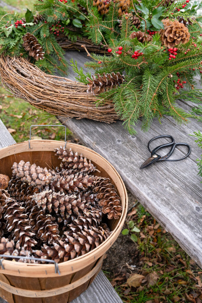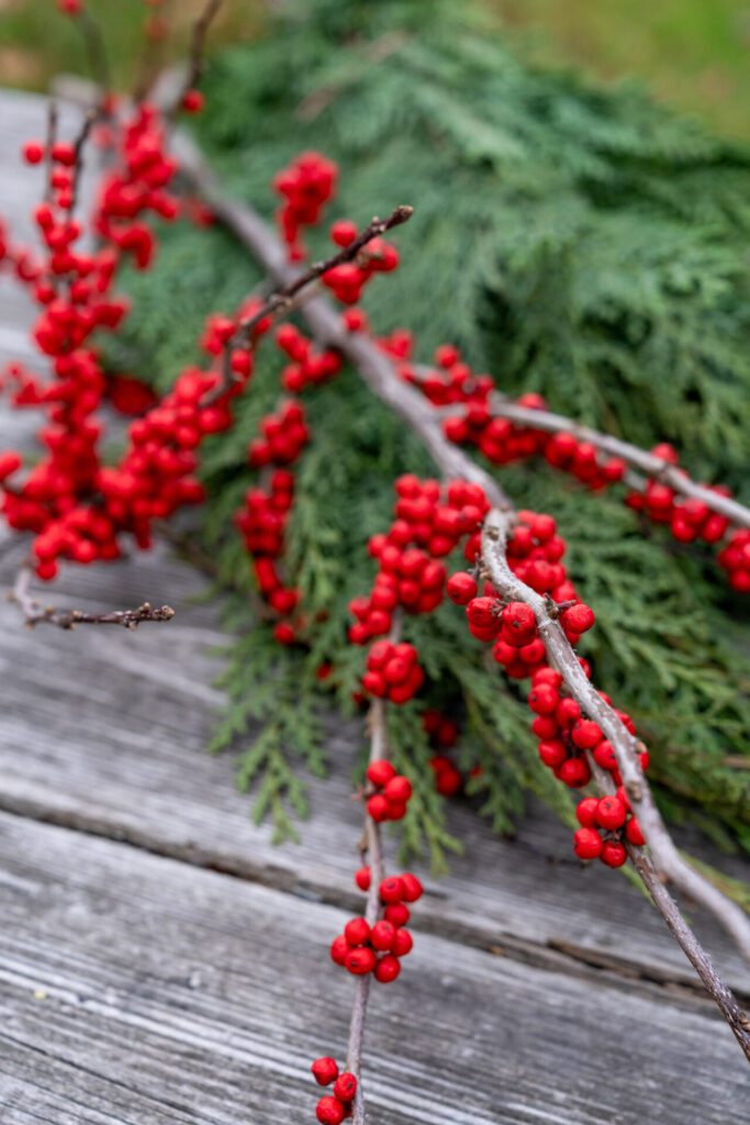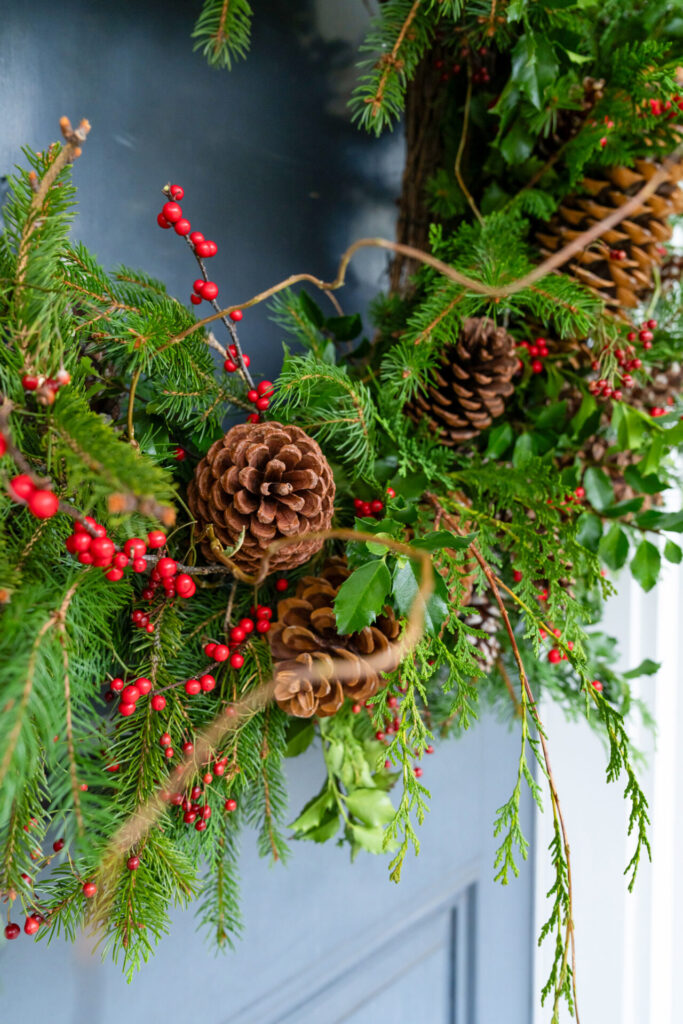 “This year everybody is going back to that very traditional New England style—think Ralph Lauren. The tweeds, the plaids, the deep burgundy reds, deep forest greens, and large pinecones, berries, and foliage picked from the woods. I think people are going back to tradition, and the deeper red is making a big comeback,” explains Sandra Sigman, owner of Les Fleurs, a French-inspired home, garden, and floral shop.