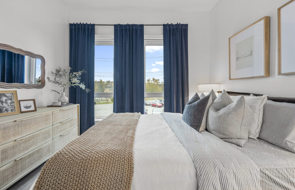 Upon entering each of the Studio, One-, and Two-Bedroom apartments, residents are enveloped in a modern, bright, open space with designer finishes and premium touches. “Every finish at Lore was selected with one thing in mind, elevated daily living. From quartz countertops and soft-close cabinetry to plank flooring and designer lighting, the materials were chosen for both style and durability. The palettes strike a balance between modern sophistication and warm coastal tones, creating a space that feels custom, calming, and distinctly Salem,” details Carroll. Apartments also contain stainless steel appliances, expansive closets, and an in-apartment washer and dryer.